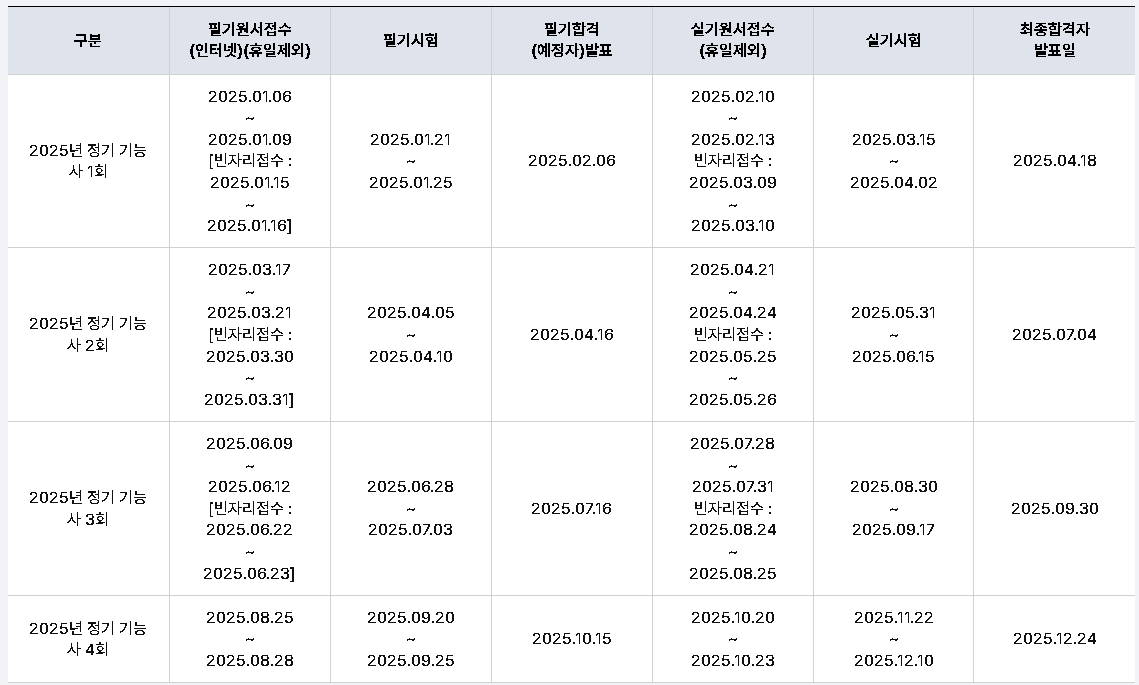 2025년부터 필기 과목명이 일부 변경이 되었으니, 최신 기출문제와 변경된 출제 기준을 참고하여 준비하시기 바랍니다.